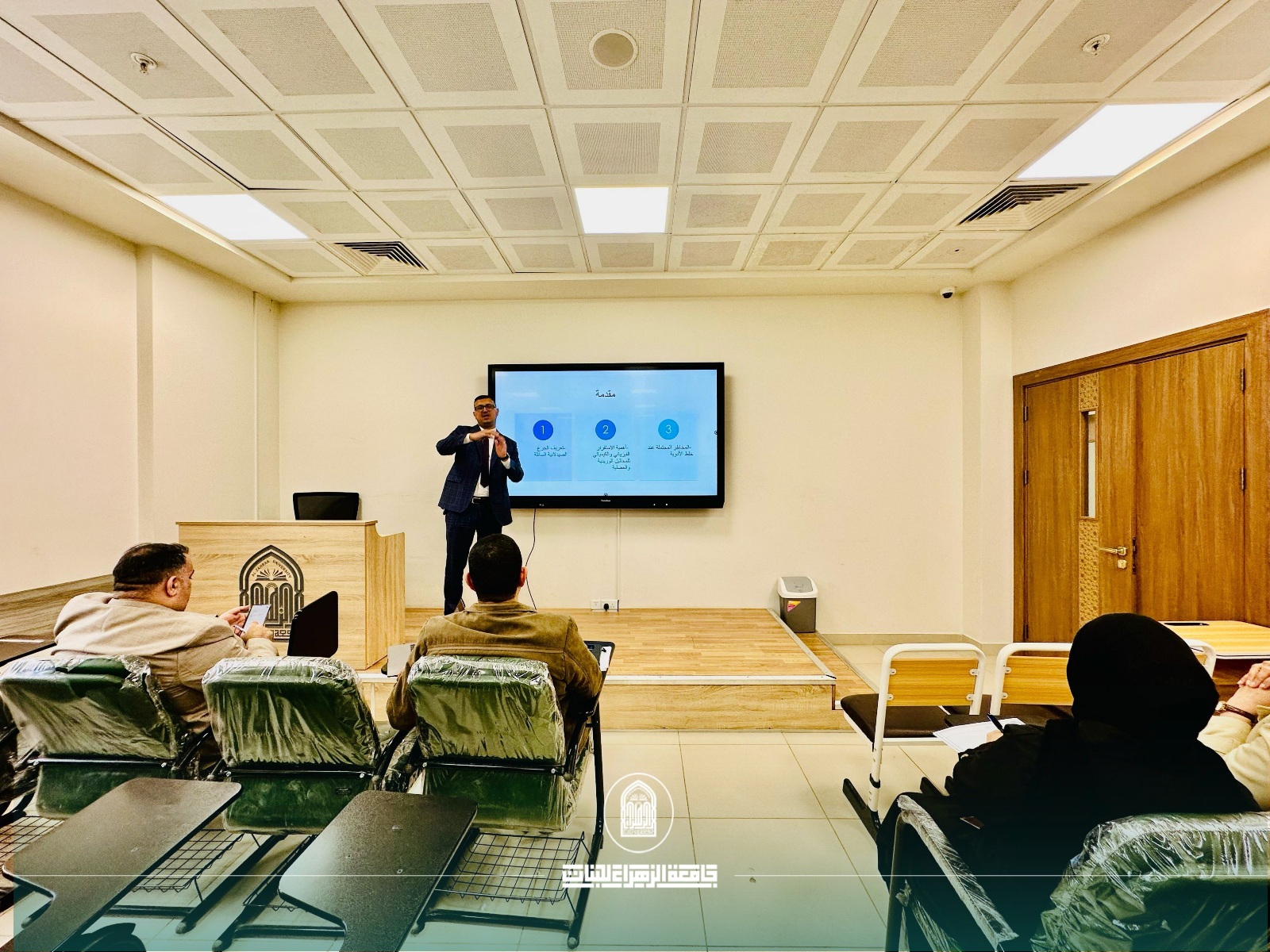 برعاية السيدة رئيسة جامعة الزهراء (عليها السلام) للبنات أ.د. زينب الملا السلطاني، وإشراف عميد كلية الصيدلة السيدة أ.د. نور الدباغ، نظمت كلية الصيدلة بالتعاون مع شعبة التأهيل والتوظيف والمتابعة ورشة توعوية تثقيفية حول استقرارية الجرع الصيدلانية السائلة بعد خلط المحاليل الوريدية او العضلية، قدمها التدريسي م.د .ضياء رحيم التميمي.