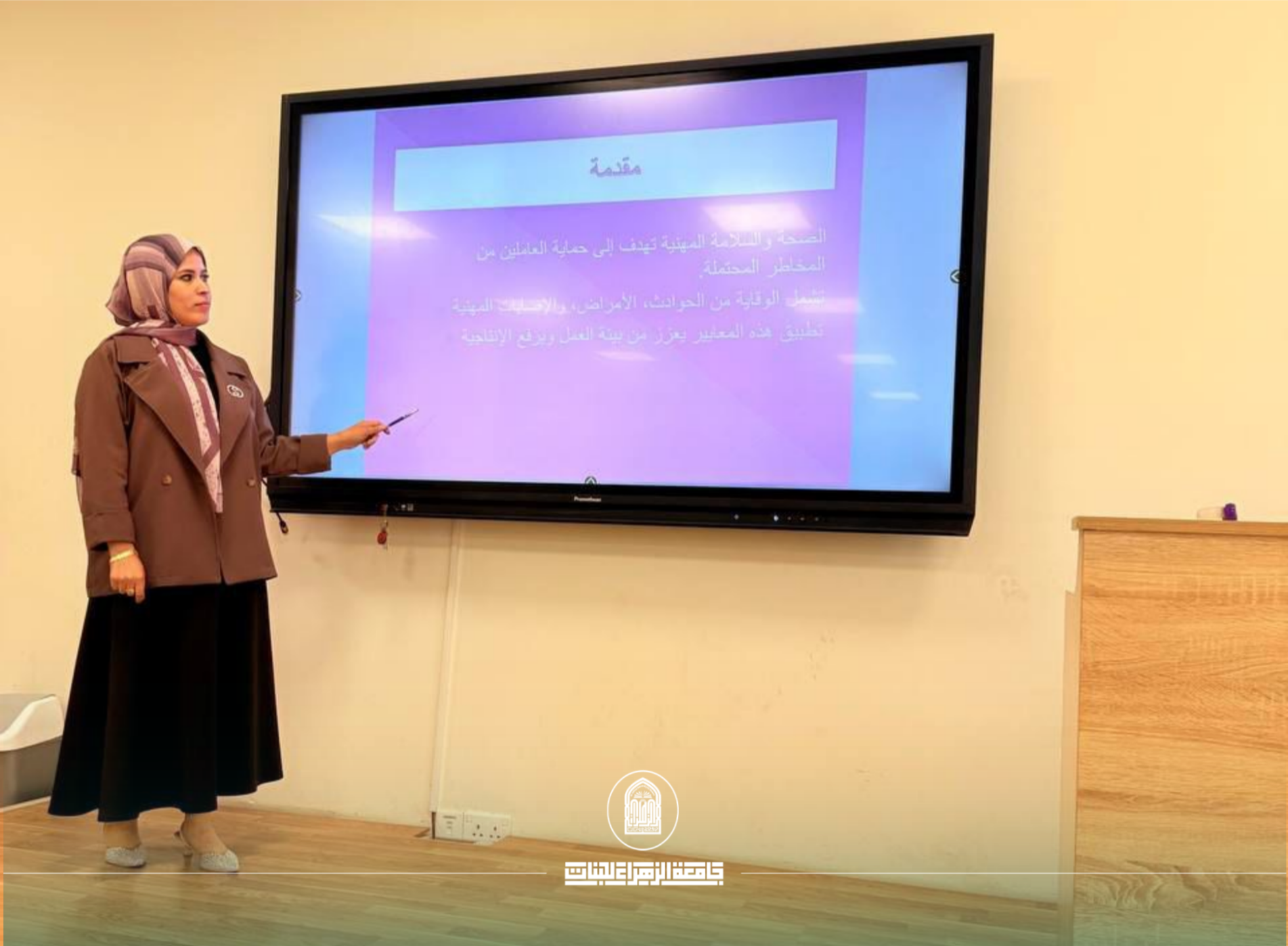برعاية السيدة رئيسة جامعة الزهراء (عليها السلام) للبنات، الأستاذة الدكتورة زينب الملا السلطاني، وبإشراف السيدة عميدة كلية الصيدلة، الأستاذة الدكتورة نور الدباغ، وبتعاون مشترك مع مركز التعليم المستمر، نظّمت كلية الصيدلة ورشة علمية بعنوان "أهمية تطبيق معايير الصحة والسلامة المهنية في مكان العمل" قدّمتها التدريسية في كلية الصيدلة، م.م. بنين علي ناجي