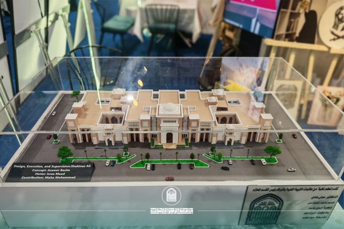 وقد تولّت تنفيذ المجسّم الطالبات: شهيناز علي، أساور باسم، إسراء معد، ومها محمد، بإشراف السيد رئيس قسم التربية الفنية م.د. عوني الربيعي، حيث جاء العمل ثمرةً للتعاون الفني والعمل الجماعي، ومعبّرًا عن الطاقات الإبداعية التي تحرص الجامعة على تنميتها ودعمها.