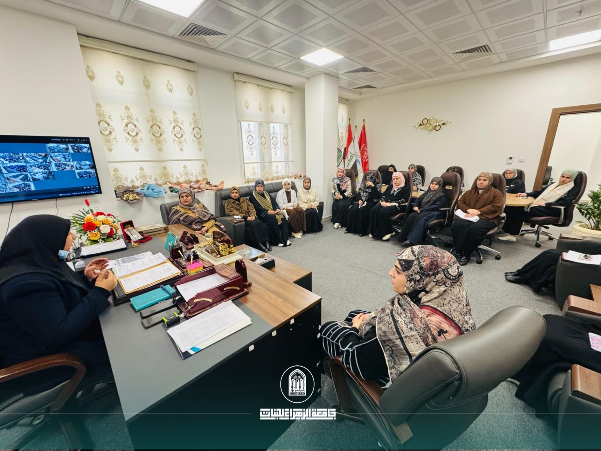 Prof. Dr. Noor Al-Dabbagh, Dean of Pharmacy Faculty at Al-Zahraa University for Women, held a regular meeting with the Faculty’s administrative and technical staff members on Saturday, March 1, 2025, to discuss the latest recommendations and strategies for work efficiency improvement. The meeting covered several key topics, including: guidelines clarification for newly established divisions and units, safety procedures reinforcement inside scientific laboratories. Moreover, staff members were also directed towards demonstrate further accuracy and timely handling of official correspondence. Finally, suggestions were made with a view to promote administrative performance and work environment.