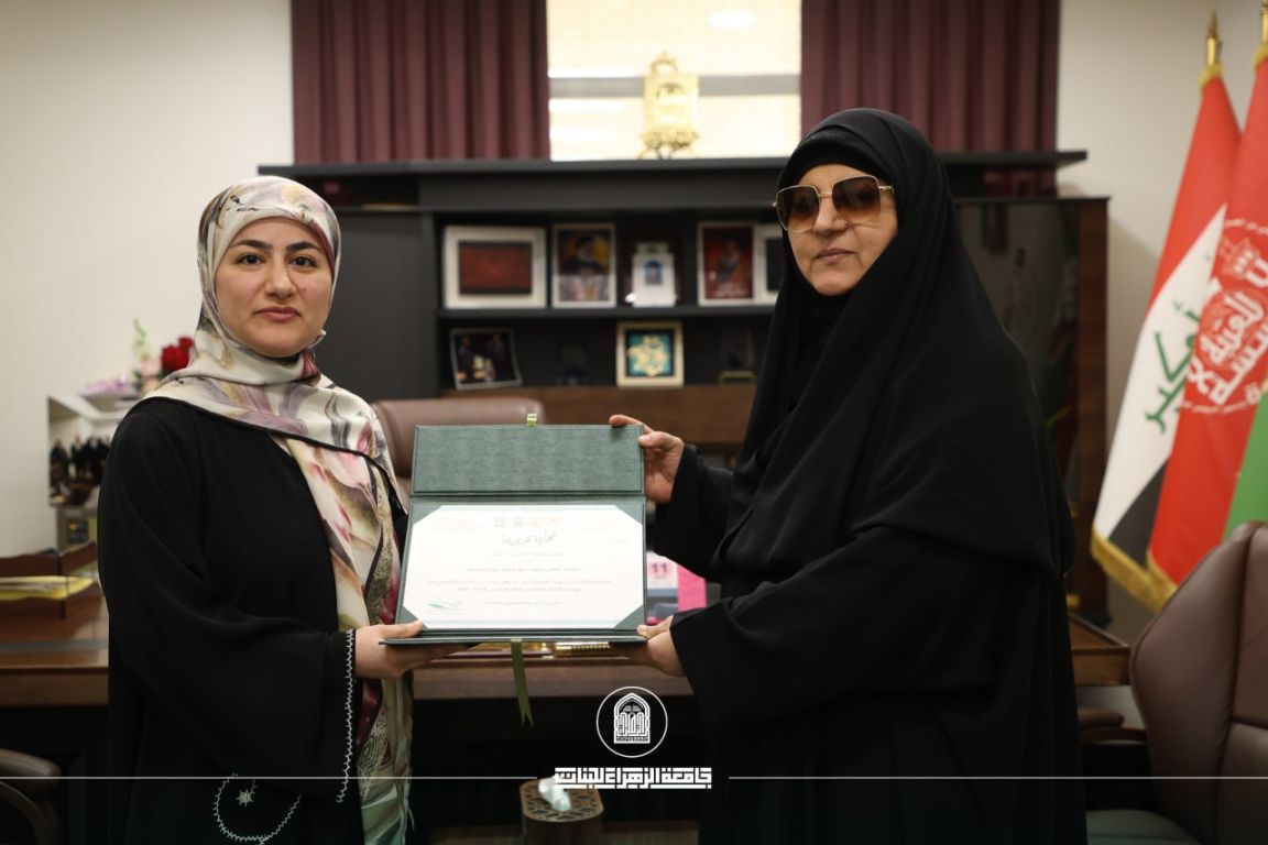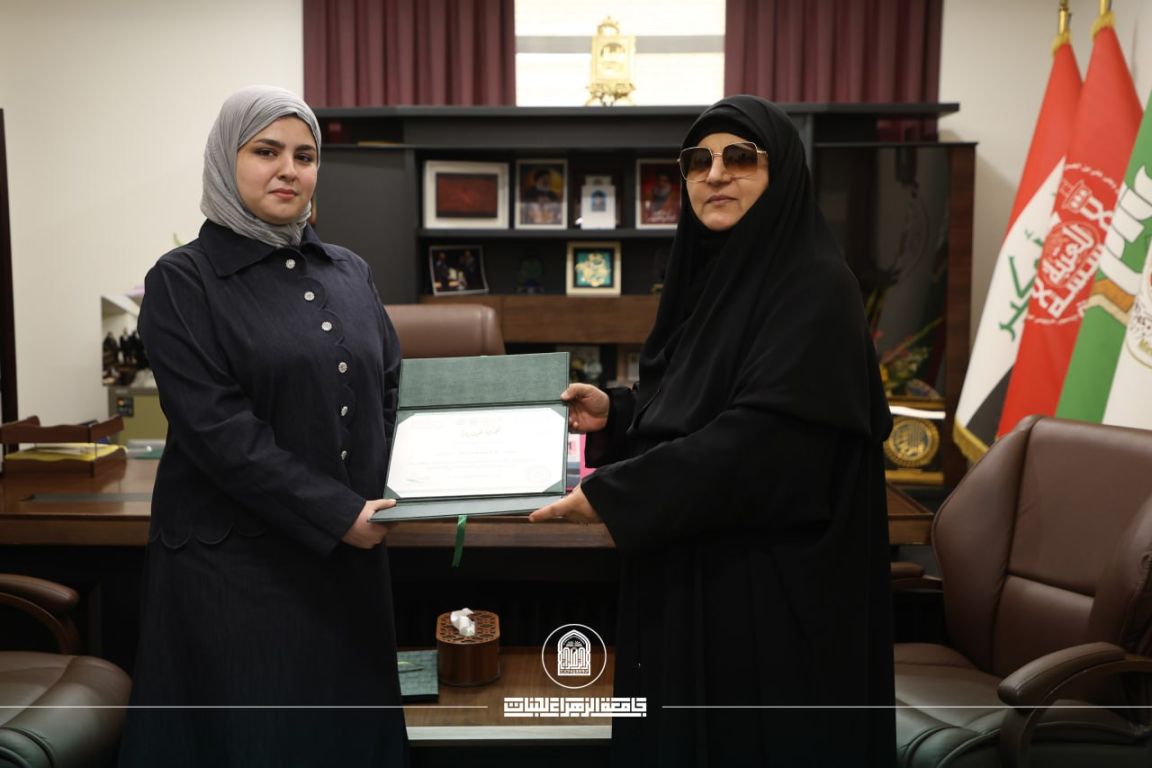 • Director of the International Accreditation Department / Scientific Supervision and Evaluation Authority / Ministry of Higher Education and Scientific Research , among the corridors of Al-Zahraa University, for Women .