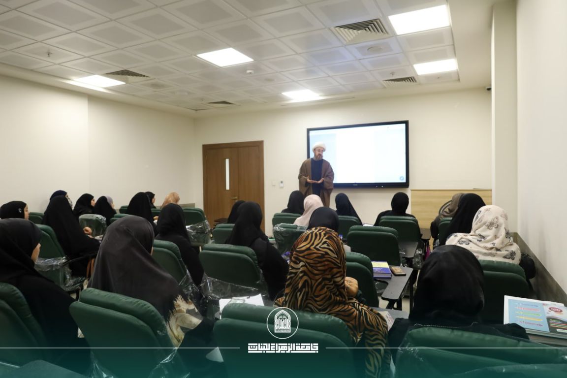 Under the patronage of the President of Al-Zahraa (PBUH) University for Women, Prof. Dr. Zainab Al-Sultani, and under the supervision of the Dean of the College of Education, Prof. Dr. Iman Sameer Bahiyya, the Department of Arabic Language held a scientific course titled “Supplications in the Holy Qur’an.” The course was delivered by the lecturer, Sheikh Dr. Hussein Al-Nasrawi, who discussed the importance of supplication in the life of a believer as a profound spiritual connection between the servant and God, in addition to the significant intellectual, cognitive, and educational meanings it carries.